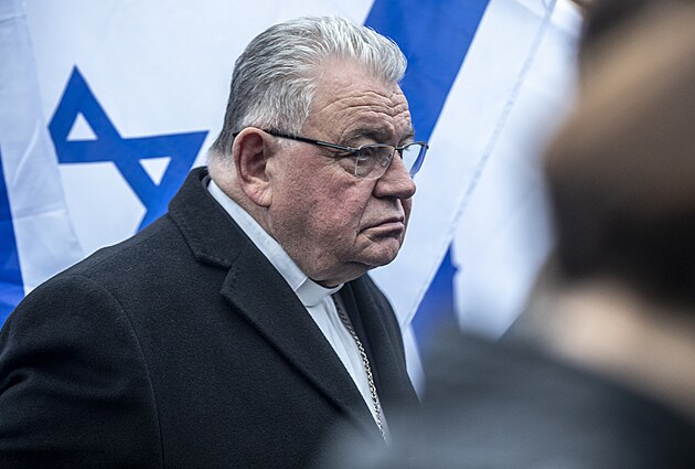 Arcibiskup Dominik Duka na pietnímshromáždění na Staroměstském náměstí při příležitosti výročí teroristického útoku Hamásu na Izrael. (7. října 2024)