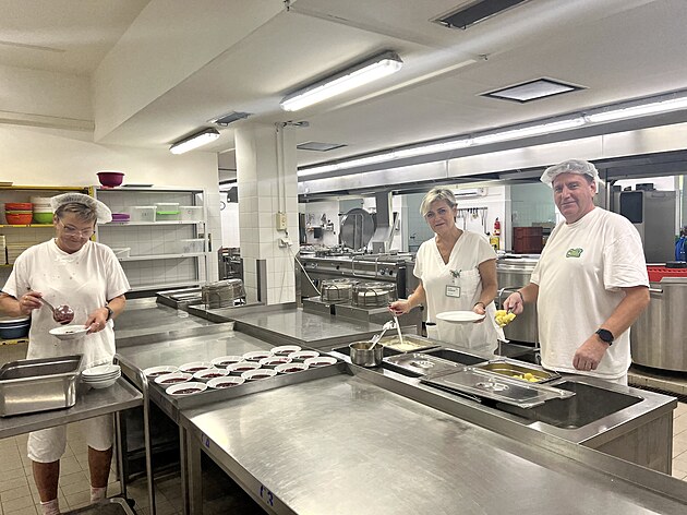 Nutriční terapeutka Monika Jandová (uprostřed) vede stravovací provoz v brněnském Domově pro seniory Věstonická.