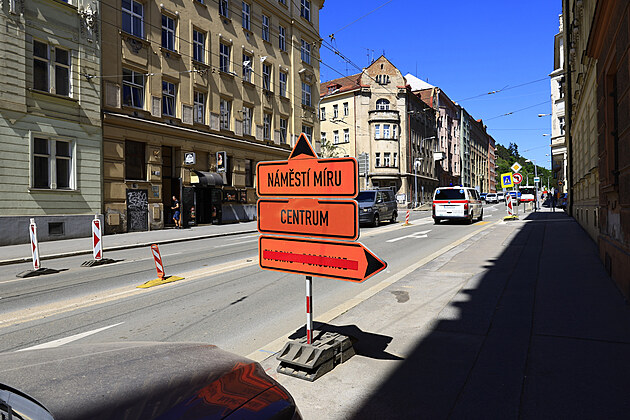 Průjezd po ulici Úvoz je už komplikovaný v současnosti, když řidiči projíždí s rekonstruovanou ulicí Údolní. Od soboty 16. srpna tímto místem povede jen jeden pruh. (11. srpna 2025)