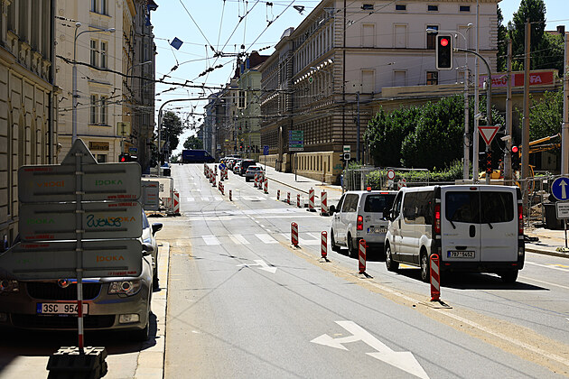Průjezd po ulici Úvoz je už komplikovaný v současnosti, když řidiči projíždí s rekonstruovanou ulicí Údolní. Od soboty 16. srpna tímto místem povede jen jeden pruh. (11. srpna 2025)