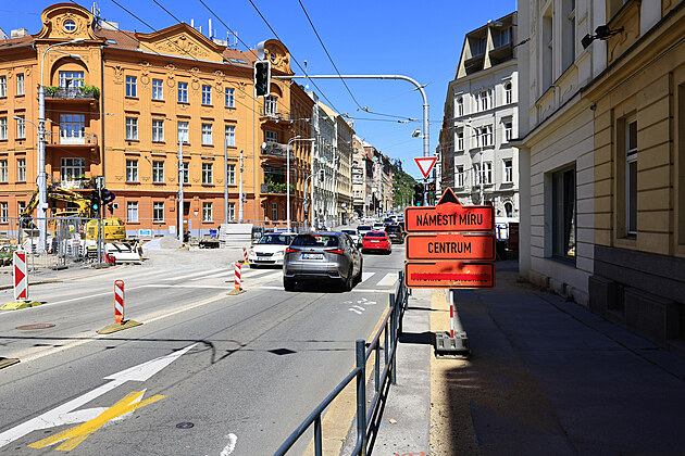 Průjezd po ulici Úvoz je už komplikovaný v současnosti, když řidiči projíždí s rekonstruovanou ulicí Údolní. Od soboty 16. srpna tímto místem povede jen jeden pruh. (11. srpna 2025)