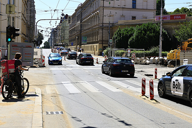 Průjezd po ulici Úvoz je už komplikovaný v současnosti, když řidiči projíždí s rekonstruovanou ulicí Údolní. Od soboty 16. srpna tímto místem povede jen jeden pruh. (11. srpna 2025)