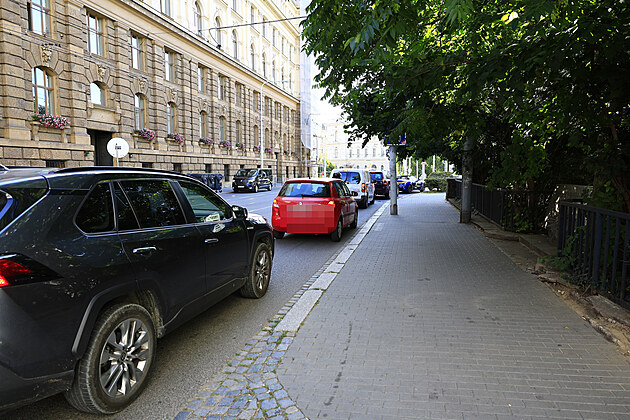 Dopravu v Brně zkomplikovala uzavírka na Úvozu, kvůli níž se štosovala auta i v okolních ulicích. Na snímku Veveří. (18. srpna 2025)