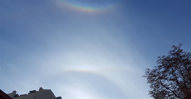 Zajímavé však podle meteorologa je netradiční propojení. „V tomto konkrétním případě se duha tváří jako odraz halového jevu. Osobně jsem se s tímto obrazcem nikdy nesetkal,“ neskrýval.