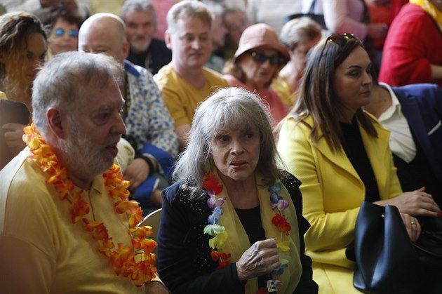Eva Pilarová s manželem na smutečním rozloučení se zesnulým showmanem Danielem Nekonečným (4. dubna 2019)