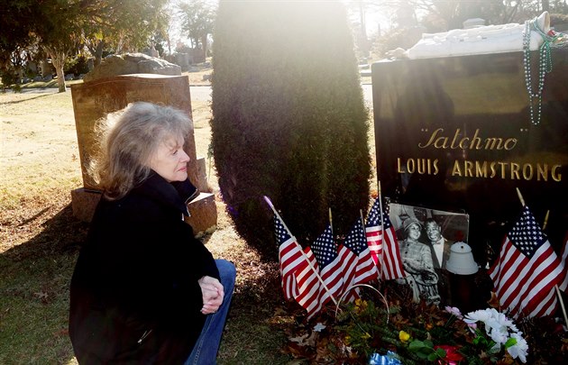 Eva Pilarová u hrobu Louise Armstronga (2018)
