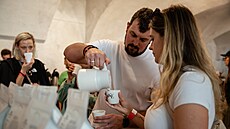 „Já nejsem moc espressovej, ale chutnal mi pistáciovej flat white,“ směje se Lukáš při odpočinku v lehátku v chill-out zóně. Sklenku bílého z vinárny Kaple popíjí na čerstvém vzduchu. „Sám mám radši něco slabšího, spíš neutrálního,“ dodává.