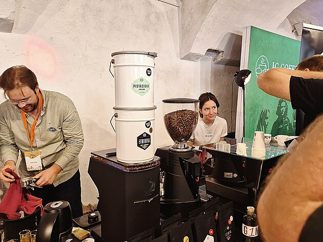 Festival Roast! 2025 v Brně. V bývalé Káznici návštěvníci neomezeně ochutnávali výběrovou kávu, poslouchali přednášky a účastnili se workshopů. (20. září 2025)