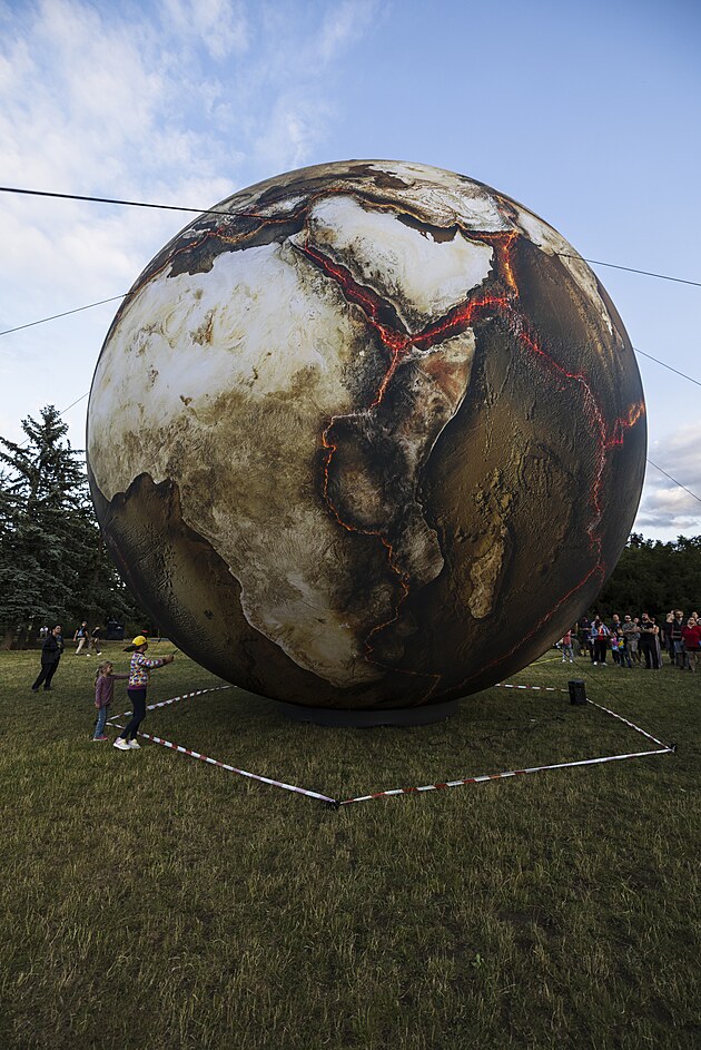 Brněnskou Kraví horu tento týden ovládá Festival planet. Novinkou je pro návštěvníky model zemské Litosféry, který ukazuje povrch planety Země bez vody. (7. července 2025)