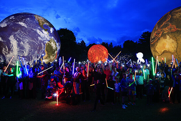 Milovníci scifi se sešli v úterý večer na festivalu Planet planet v parku na Kraví hoře u brněnské hvězdárny. Na sobě měli kostýmy z oblíbených filmů, přinesli si také svítící doplňky, hlavně světelné meče. (5. srpna 2025)