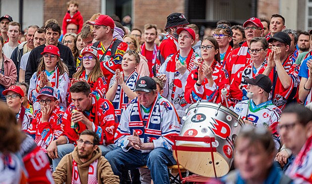 Do areálu Automatických mlýnů přišlo podpořit pardubické hokejisty v prvním finále extraligy proti brněnské Kometě několik stovek fanoušků. (17. dubna 2025)