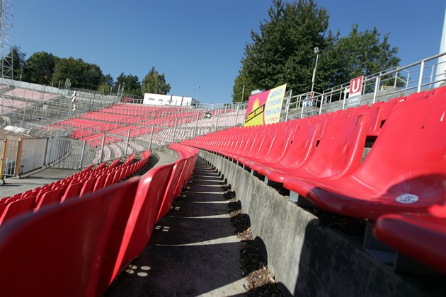 KOTEL. Brněnští vlajkonoši se scházejí na tribuně za jednou z branek, poslední dobou jich však ubývá. Také proto, že odsud není na hřiště zrovna ideální výhled.
