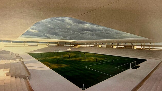 Vizualizace budoucí podoby městského fotbalového stadionu na Srbské v Brně.
