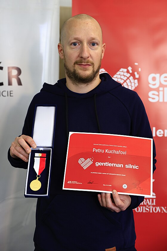 Osmatřicetiletý Petr Kuchař převzal ocenění Gentleman silnic za to, že v srpnu 2024 pomohl na Znojemsku zastavit neřízenou tatru a poskytl první pomoc jejímu řidiči, který zkolaboval po bodnutí hmyzem.