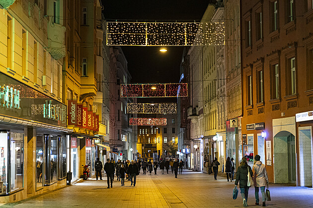 Jednoduché světelné řetězy slouží místo poruchových girland jako dočasné řešení vánoční výzdoby v centru Brna.