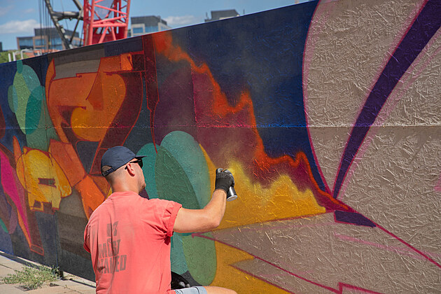 Galerie pouliční malby dlouhá 225 metrů vznikala na oplocení kolem staveniště nové brněnské čtvrti od rána až do večera, někteří svou část přišli dodělávat ještě v neděli.