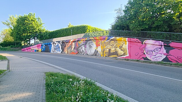 Graffiti na opěrné zdi znázorňuje brněnské osobnosti