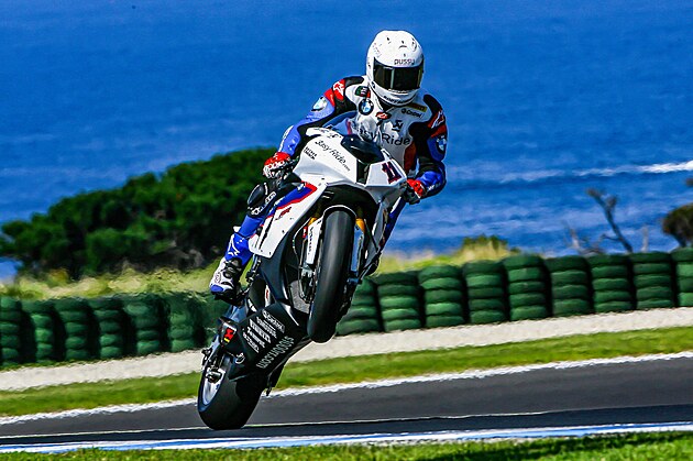 Troy Corser v plné parádě na Phillip Islandu. (foto z výstavy Marka Paulíčka k jeho 60. narozeninám)
