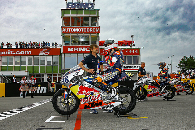 V Brně fotí Marek Paulíček pravidelně. Takhle zachytil na startu Karla Haniku s jeho otcem. (foto z výstavy Marka Paulíčka k jeho 60. narozeninám)