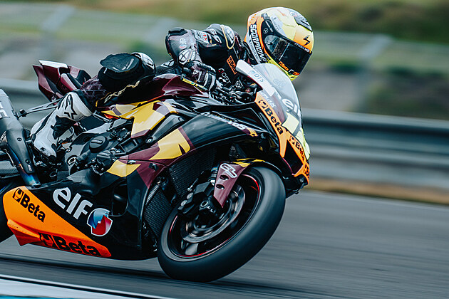 Motocyklový jezdec Filip Salač při prvním testování nového asfaltu na dráze brněnského Masarykova okruhu. (29. května 2025)