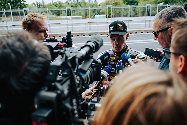 Motocyklový jezdec Filip Salač po prvním testování nového asfaltu na dráze brněnského Masarykova okruhu. (29. května 2025)
