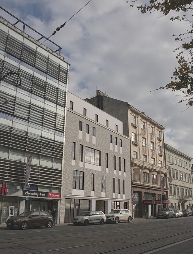 Takto má vypadat ulice Lidická po zbourání zchátralého historického domu a výstavbě nového na jeho místě hned vedle Městského divadla Brno.