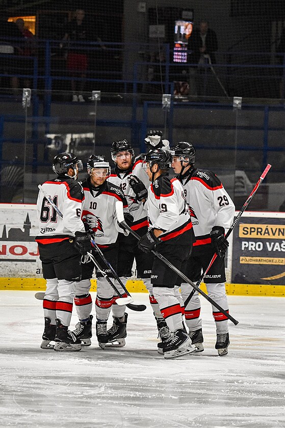 Sezona 2025/26 je čtvrtá v řadě, v níž hokejoví Orli Znojmo působí v českých soutěžích – v tomto případě ve 2. lize. Na snímku přípravný zápas s Hodonínem.