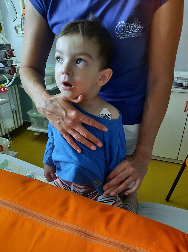 Honzík se po nešťastné události musel znovu učit jíst, polykat, sedět a reagovat na své okolí.