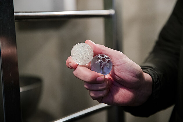 Vánoční kuličky z dvou speciálních edicí, které jsou pro brněnský „orloj“ připraveny na adventní čas v roce 2023.