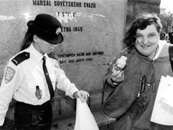 Dochovala se fotka, jak jednu z demonstrací na náměstí Svobody s papírkem v ruce moderuješ. Víš dodnes, co jsi na papírku měla napsané?