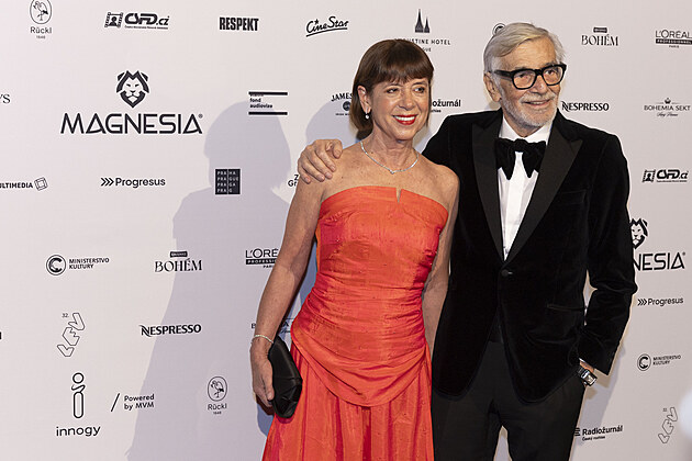 Jiří Bartoška s manželkou Andreo na posledním vyhlášení Českých lvů v březnu 2025