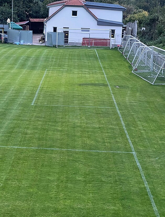 Po dvojitém řádění divočáků ze začátku září se trávník na fotbalovém hřišti v brněnském Jundrově chytil velice dobře. O víkendu by mohl hostit první zápas. (23. září 2025)