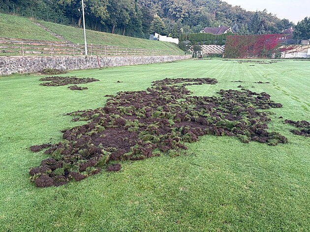 Podruhé během čtyř dnů se na hřiště fotbalistů SK Jundrov vrátili divočáci a znovu ho rozryli tak, že se na něm nedá hrát. (9. září 2025)