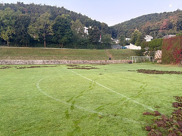 Podruhé během čtyř dnů se na hřiště fotbalistů SK Jundrov vrátili divočáci a znovu ho rozryli tak, že se na něm nedá hrát. (9. září 2025)