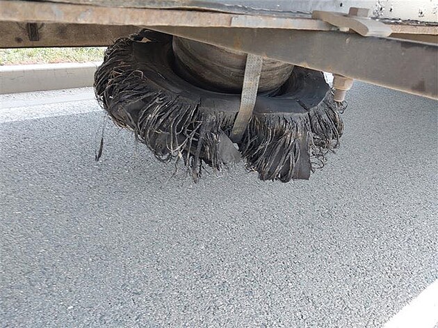 Policejní hlídky zastavily ve středu dopoledne na dálnici D2 kamion, který na zadním návěsu postrádal jedno kolo. Mířil ze Slovenska do Polska. (13. srpna 2025)