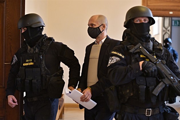 Hlavní obviněný v kauze Stoka Jiří Švachula měl při výpovědi korunního svědka Samana El-Talabaniho na sobě neprůstřelnou vestu. (6. října 2020)
