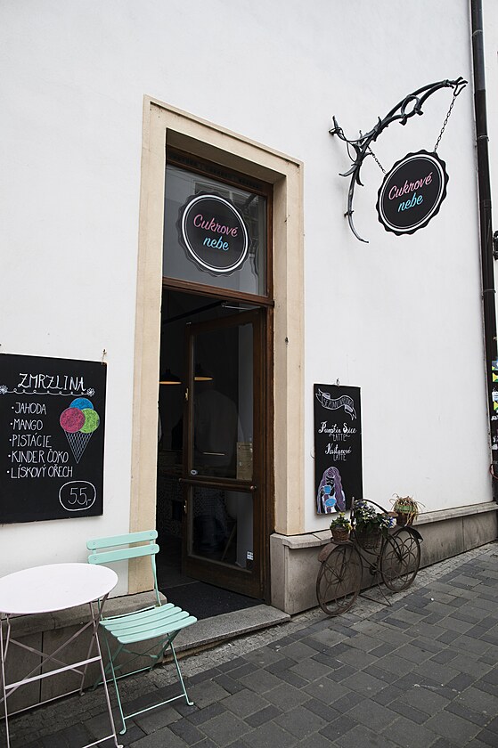 Brněnská kavárna Cukrové nebe. Vlastní ji Iva Spasiuková s Jaroslavem Schimmerem. (květen 2025)