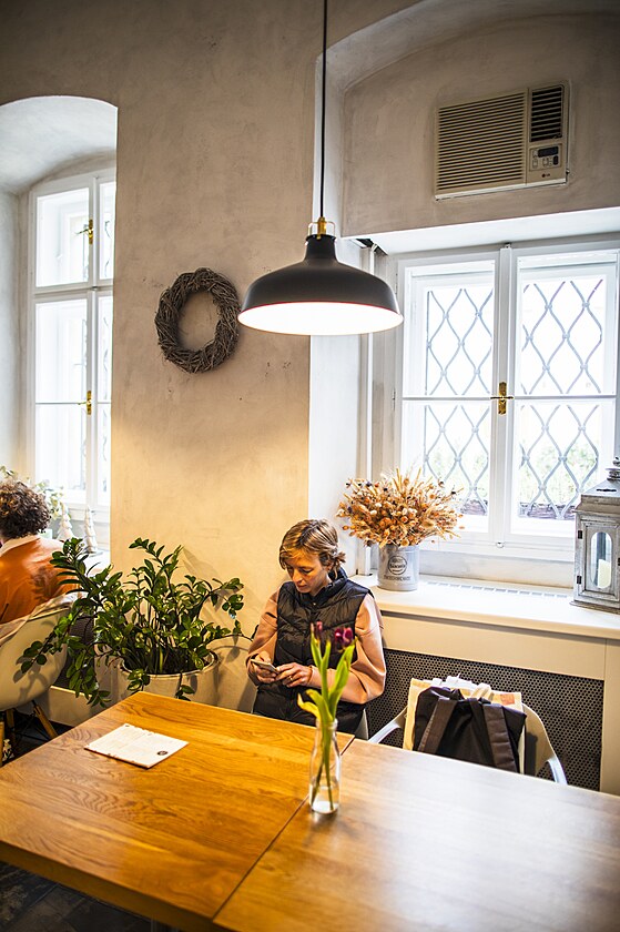 Brněnská kavárna Cukrové nebe. Vlastní ji Iva Spasiuková s Jaroslavem Schimmerem. (květen 2025)