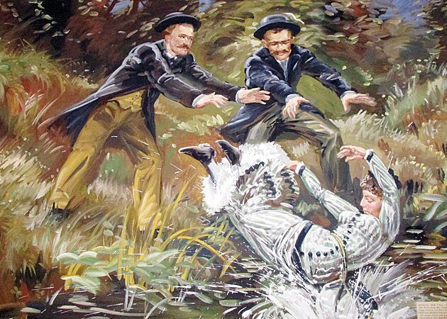 Josefínu Timalovou s přivázaným kamenem vhodili mordýři Hugo Schenk s Karlem Schlossarkem do zatopené propasti Macůška u Hranic na Přerovsku.