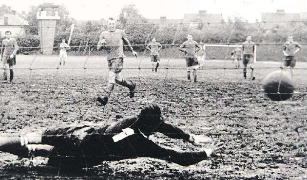 PENALTA V PODÁNÍ LEGENDY. Vlastimil Bubník se proslavil především jako hokejista, ale válel i na trávníku.