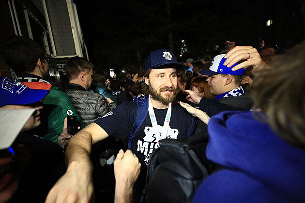 Příjezd mistrovských hokejistů Komety do Brna. Po návratu z Pardubic je přišlo přivítat na tisíc fanoušků. (30. dubna 2025)