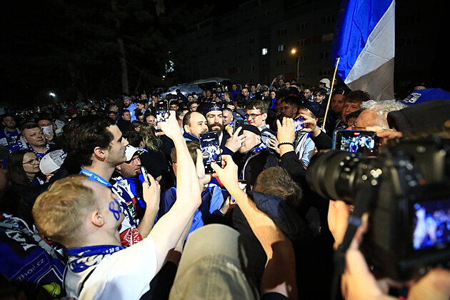 Příjezd mistrovských hokejistů Komety do Brna. Po návratu z Pardubic je přišlo přivítat na tisíc fanoušků. (30. dubna 2025)