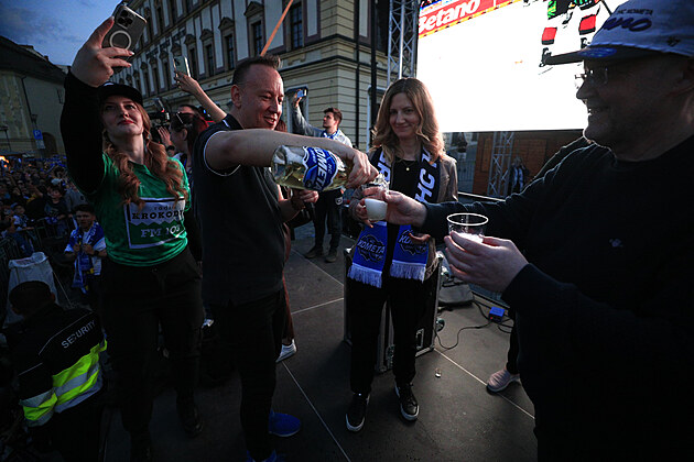 Fanoušci Komety Brno fandili při finále extraligy ze Zelného trhu. (25. dubna 2025)