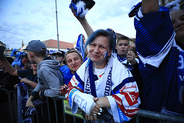 Fanoušci Komety Brno fandili při finále extraligy ze Zelného trhu. (25. dubna 2025)