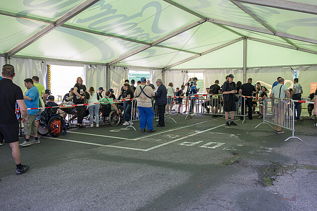 Vítězové hokejové extraligy z brněnské Komety se podepisují fanouškům v pivovaru Starobrno na Mendlově náměstí. (2. května 2025)