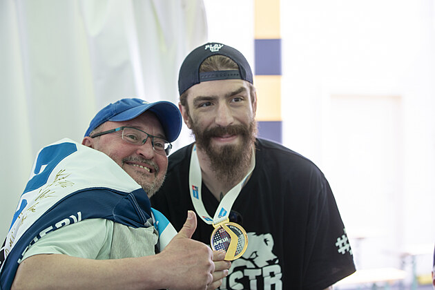 Vítězové hokejové extraligy z brněnské Komety se podepisují fanouškům v pivovaru Starobrno na Mendlově náměstí. (2. května 2025)