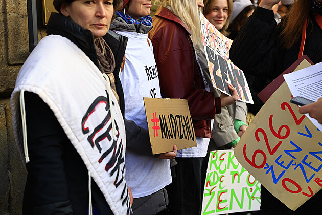 Asi stovka protestujících žen přišla na ustavující zastupitelstvo Jihomoravského kraje upozornit, že krajskou radu tvoří pouze muži. (4.11.2024)