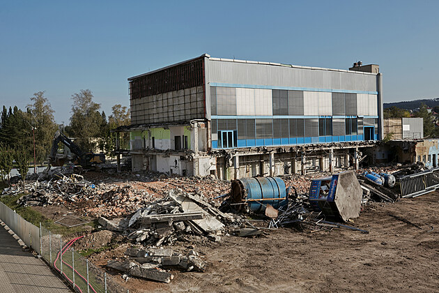 V Blansku začalo bourání lázní, na jejich místě má do roku 2026 vyrůst bazén. (září 2024)