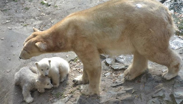 Medvědice Cora vyvedla svá mláďata poprvé z brlohu. (16. 3. 2013)