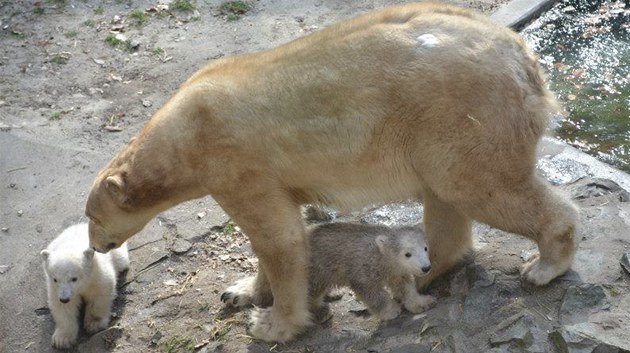 Medvědice Cora vyvedla svá mláďata poprvé z brlohu. (16. 3. 2013)